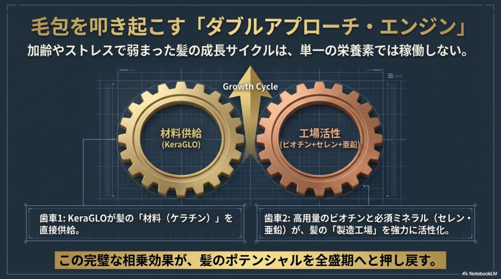 「KeraGLO」×「ビオチン」の相乗効果が毛包を叩き起こす