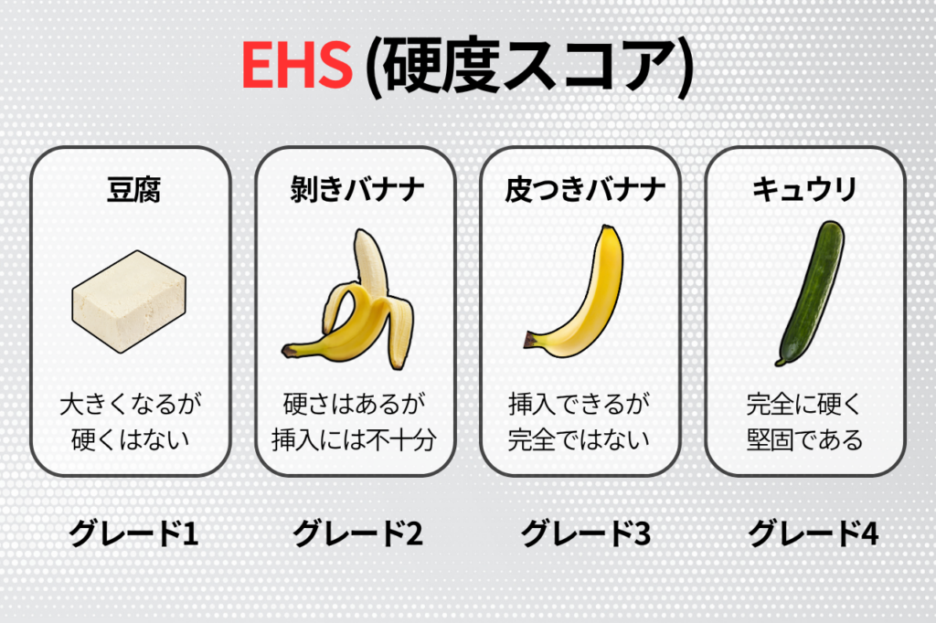 この「勃起の硬さ」は、「EHS(勃起硬度スコア)」という世界的な指標を用いて、4段階で客観的に評価されている。